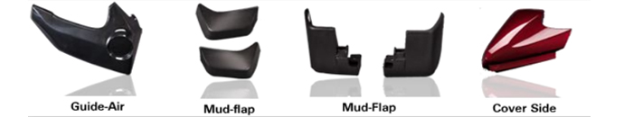 Functional : Instrument Panel Cluster, Meter Covers, Engine Covers, Engine Plugs, Chain Guides, Oil Tank Assy, Washer Bottle Assembly, Cooling Bottle Assy, Air Filter Assy, Air-conditioner and Blower parts. |